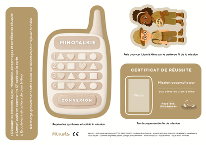 - Manipulation tactile: déplacer les personnages sur la carte, inscrire les réponses dans le Minotalkie, assembler des éléments...